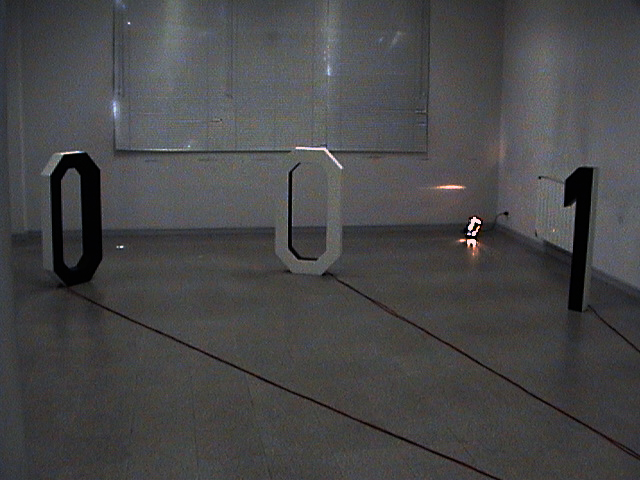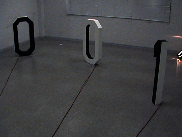 Dos “ceros” y un “uno” forman el total de esta escultura sonora la cual reproduce independientemente desde cada numero y desde su interior, 3 textos leídos a modo de voz en off y registrados digitalmente para luego ser reproducidos en forma de loop continuo.